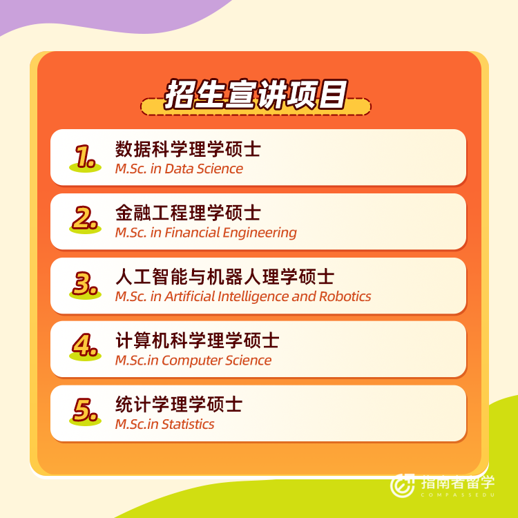 26fall正在招生的硕士项目,涵盖:数据科学、人工智能与机器人、金融工程、统计学、计算机科学。均为当下热门且潜力巨大的项目代表~