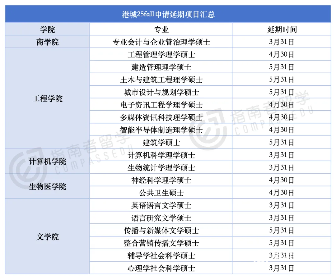 整个25fall,港城居然两次延期,5个学院的19个专业推迟了1-2个月的申请周期,部分专业甚至延期到了5月底!