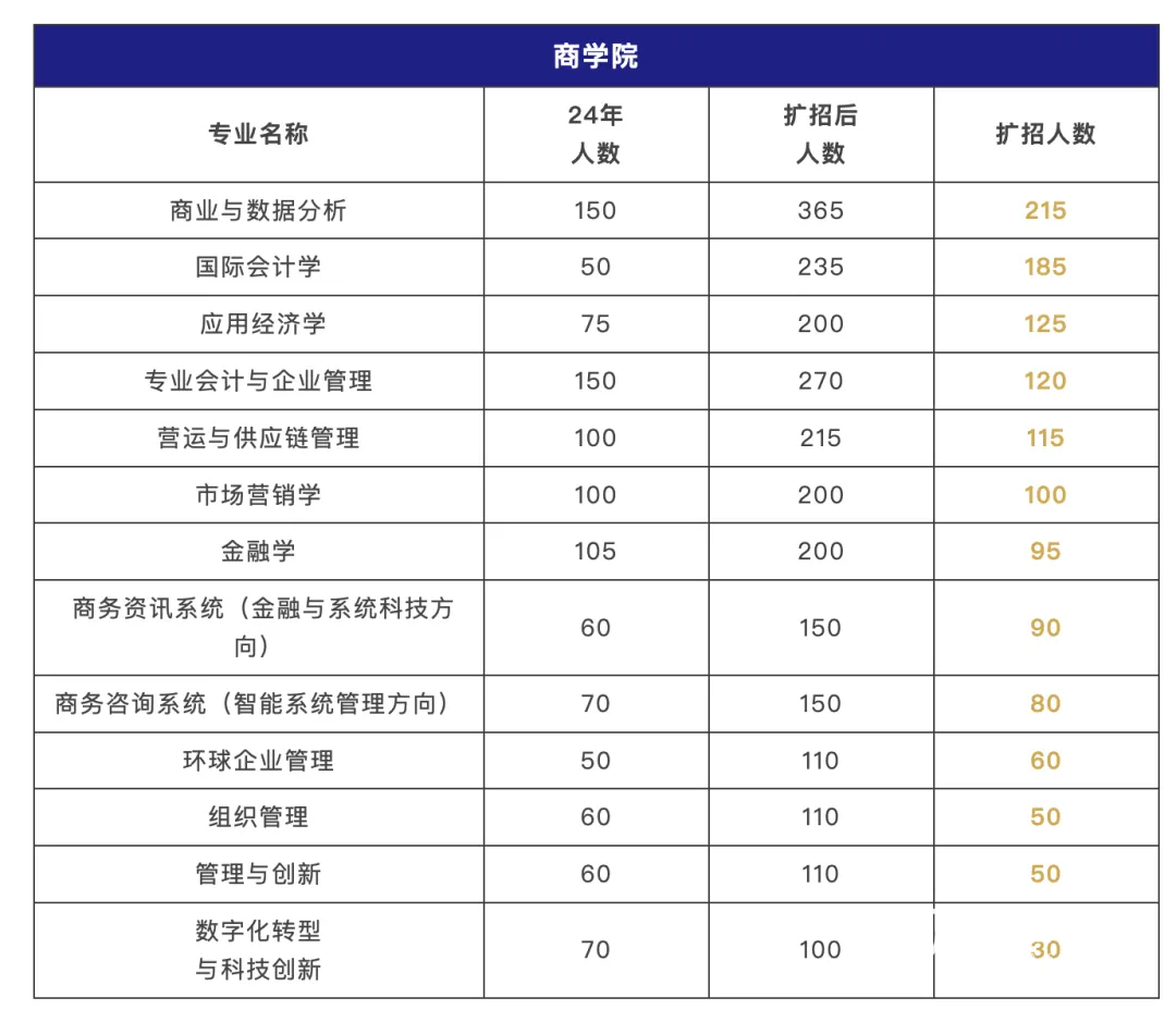 开新项目只是一方面,另一方面港城一直在扩招,25fall有54个授课型硕士专业集体扩招,光是商学院就有13个项目扩招了1315人。