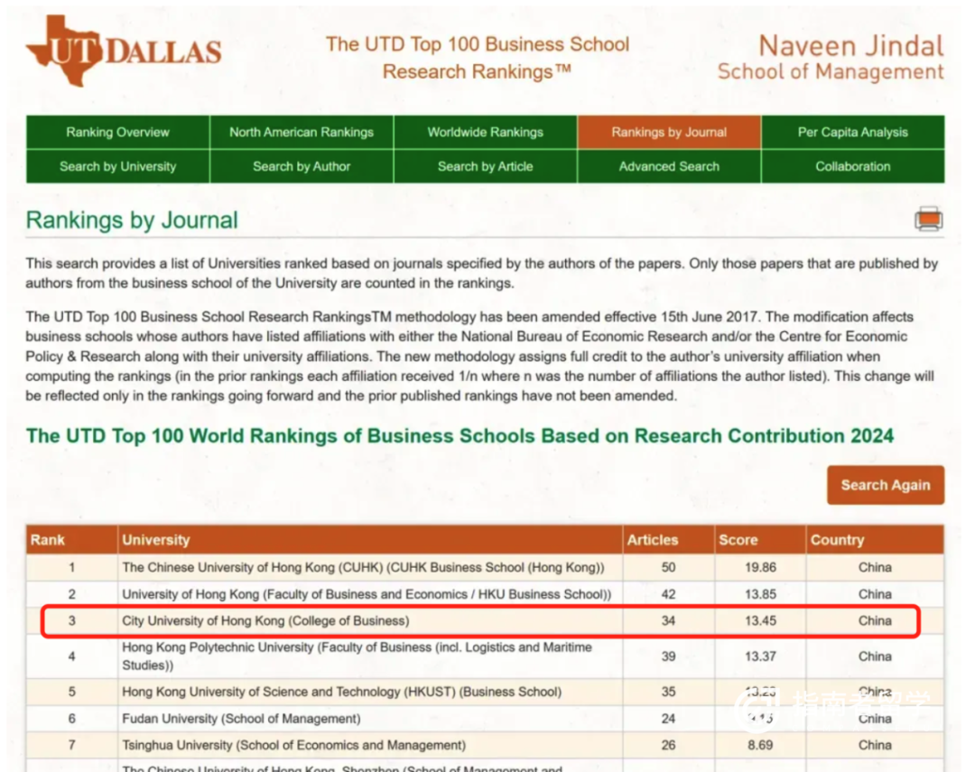 就拿商学院来说,2024年全球商学院科研排名百强榜单发布,香港城市大学商学院成功入选并位列中国商学院科研排名百强榜第3位。