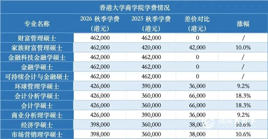 港大金融学硕士:46.2万!稳坐最贵商科宝座。