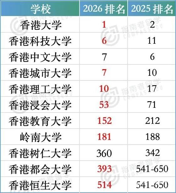 榜单中,香港地区11所院校上榜,9所港校排名都是上涨的!甚至排名前10中有5所都是港校,可谓是创造历史了!