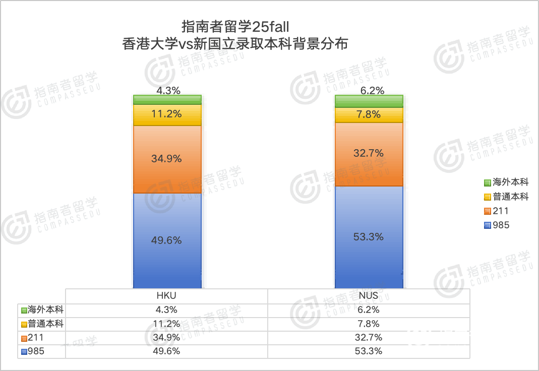 细化看,本科院校层次方面,两所学校都对“985、211”学生有一定偏好,但港大对于背景的包容度肯定是要比新国立大得多。