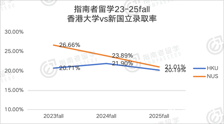 但从过往三年的录取率来看,NUS依旧高于HKU,从申请热度和投递数量上来说,港大是远超新国立的。