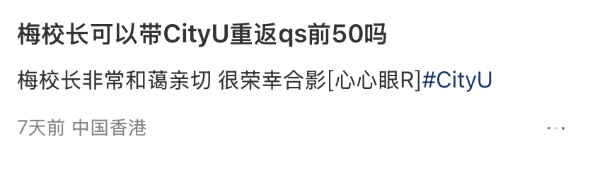 当然了,港城你也别闲着,“梅校长可以带港城重返QS前50么?”,这个问题每隔一段时间,就会有不同的人问,虽然不知道在期待什么,但就很值得期待~