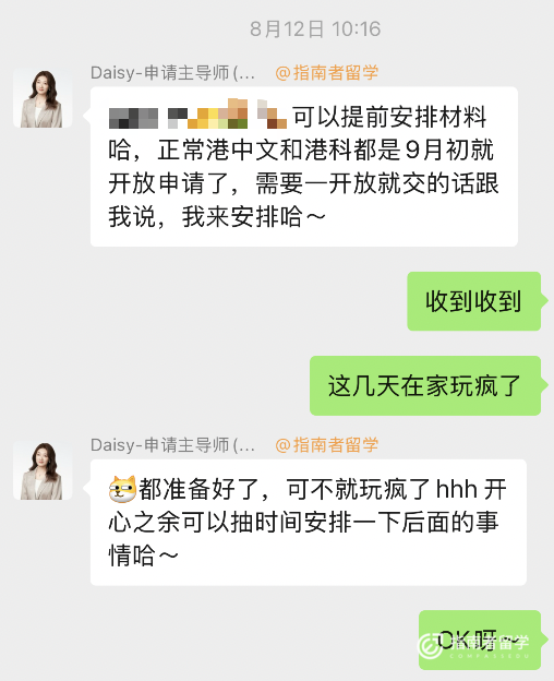 在接下来的几个月里,她就像一位贴心的朋友,定期发消息询问我的学习进度;还会给我分享港校招生讲座、雅思备考活动、科研资源等。在我因为压力大而情绪低落时,她总会鼓励我:“按节奏来,你一定可以的”。
