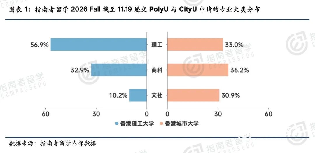 港城大则是“全面开花”,除了工科和商科,传媒、法律、语言这类社会科学专业的申请占比也相当突出,多元吸引力拉满~