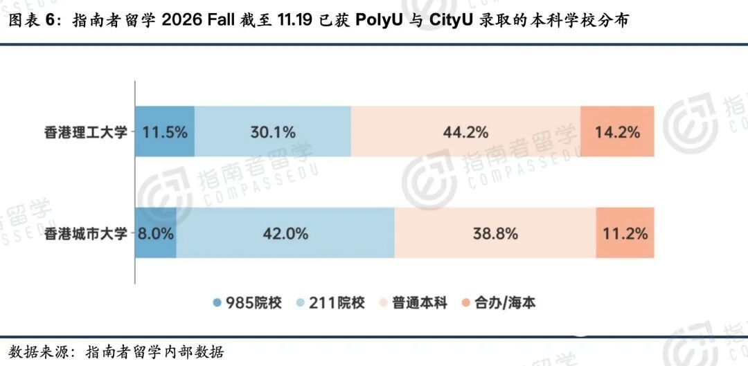 港城大理工科录取中,985/211占比超六成,明显看重院校背景;