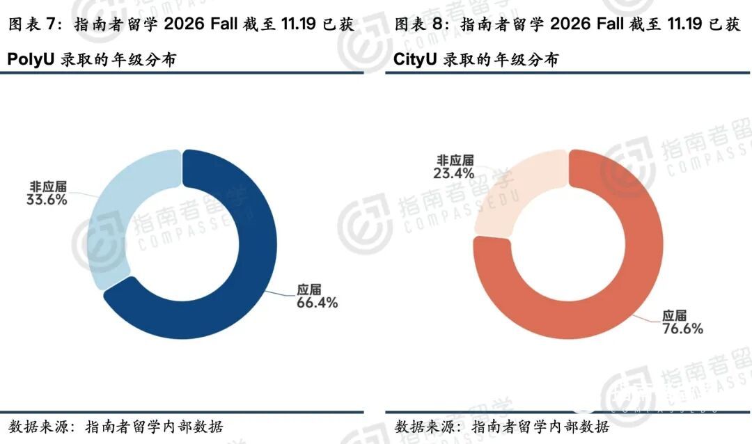 港城大是典型的“92优先”:申请群体中985/211占比33.6%,比港理工略低,但录取中这个比例直接飙升到50%,反超港理工的41.6%;而且录取的应届生占比高达76.6%,明显更偏爱名校应届生。