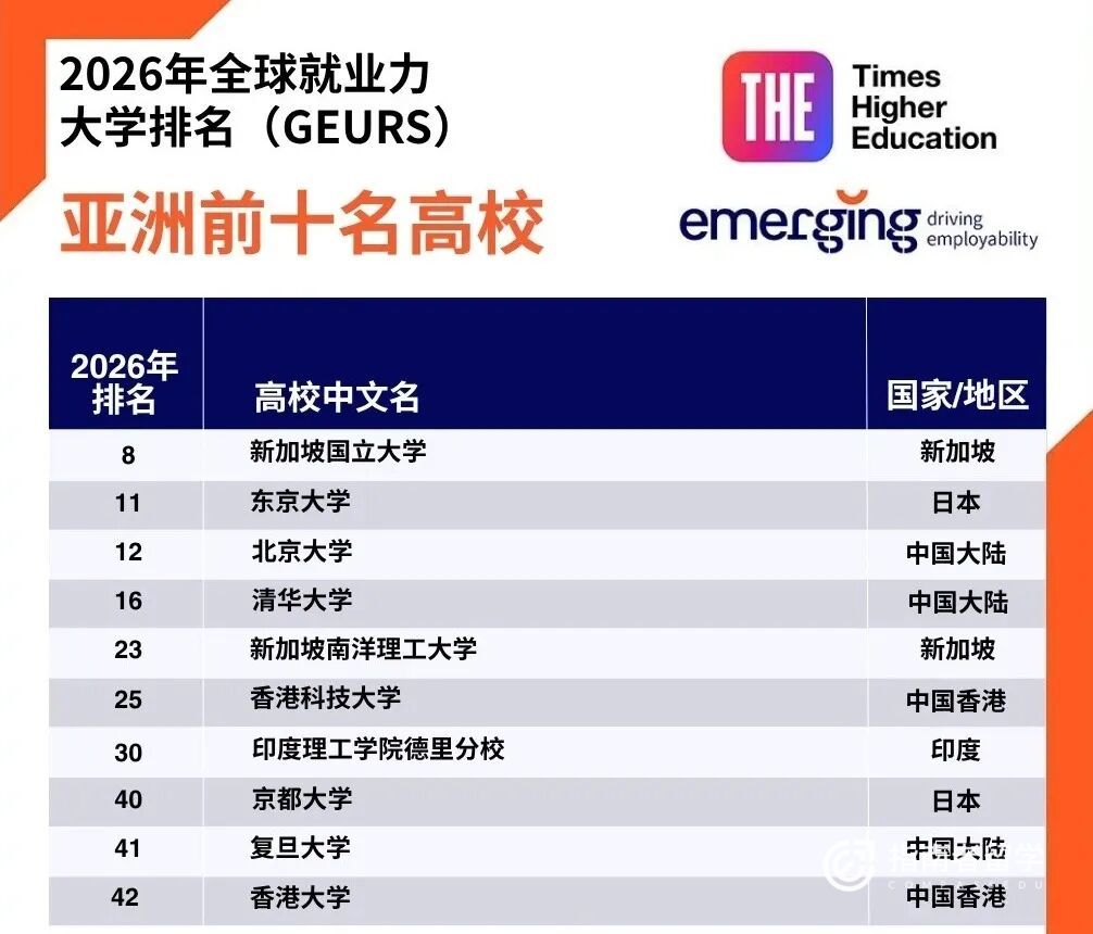 不久前,Emerging与泰晤士高等教育发布的2026年全球就业力大学排名,在全亚洲的大学圈里投下了一枚“深水炸弹”。