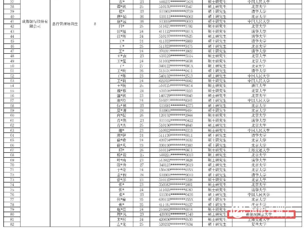 成都银行2026年秋季校园招聘(第一批次) 名单