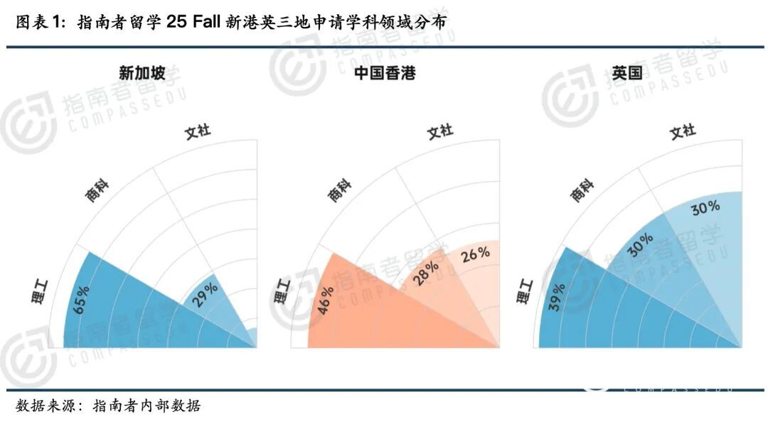 确实,港新理工科火到不行,指南者留学25fall数据显示:新加坡院校理工科申请占比飙到65%,香港也达到46%。