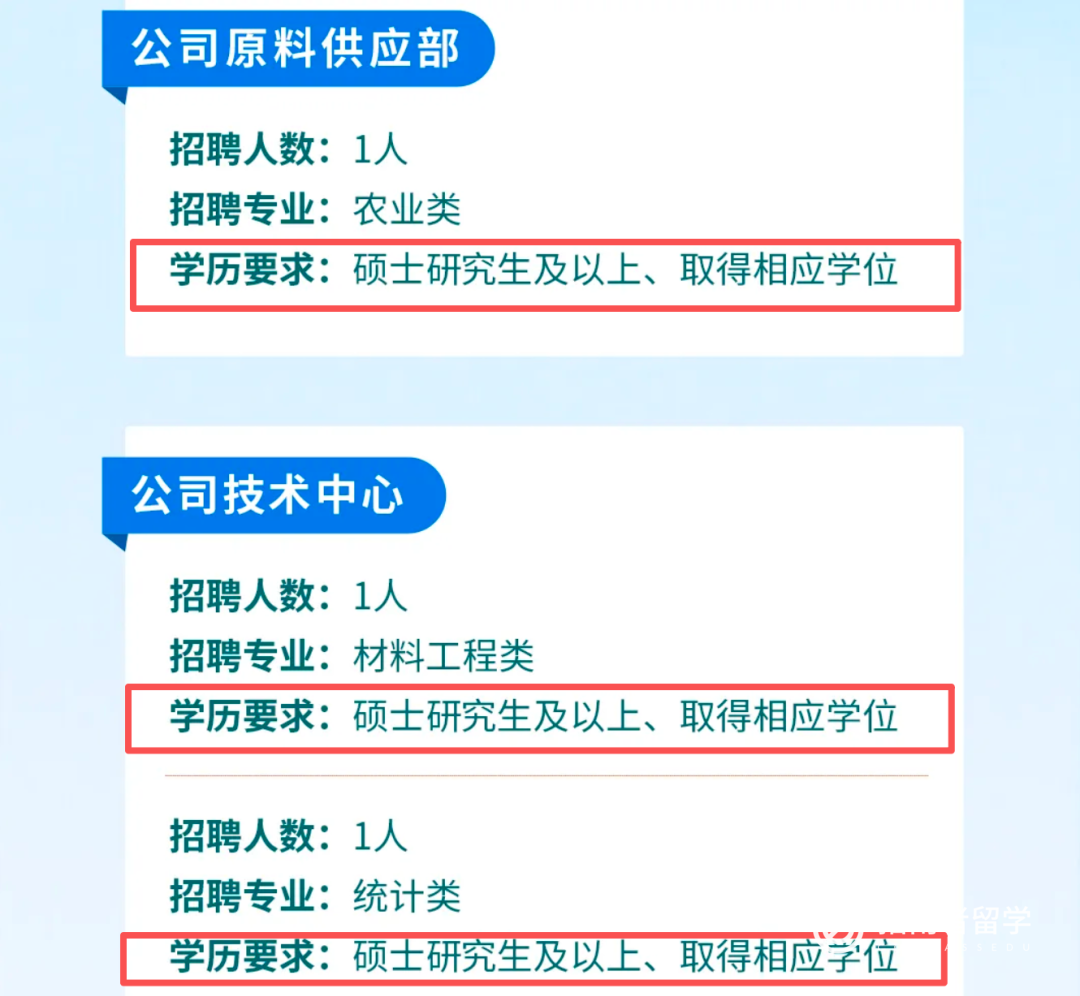而且,大家与其盯着个别招聘中对留学生的限制,我们感受更明显的应该是如今用人单位对硕士学历的青睐。