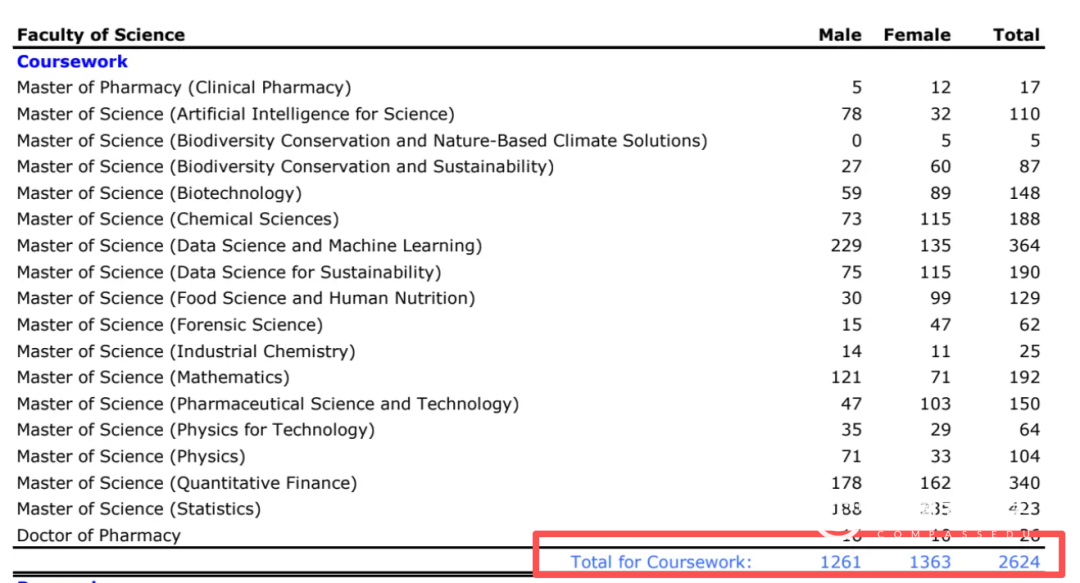 理学院紧随其后,25Fall授课型硕士高达2624人,比去年多了295个名额。