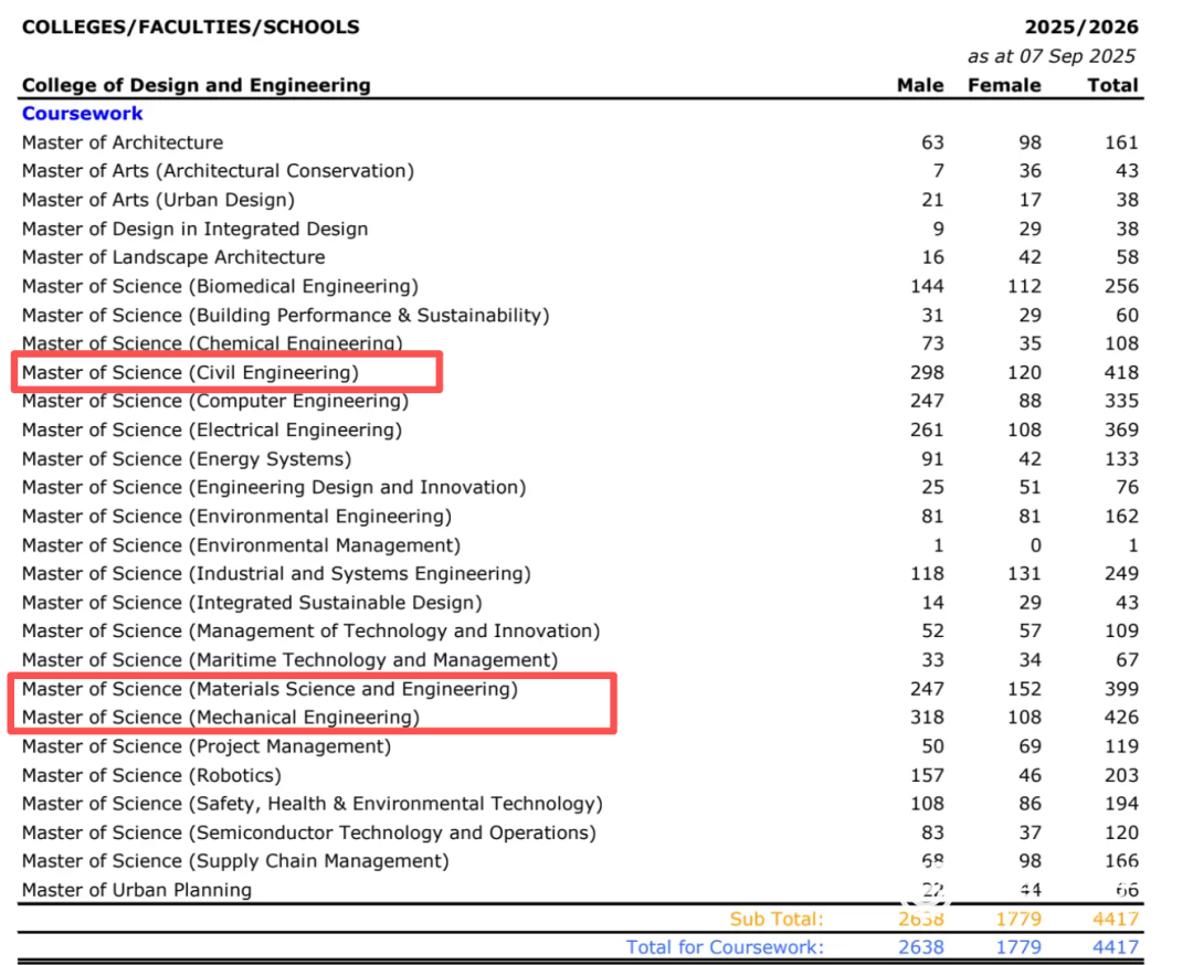 我们先来具体看看新国立2025/26学年硕士录取的具体数据: