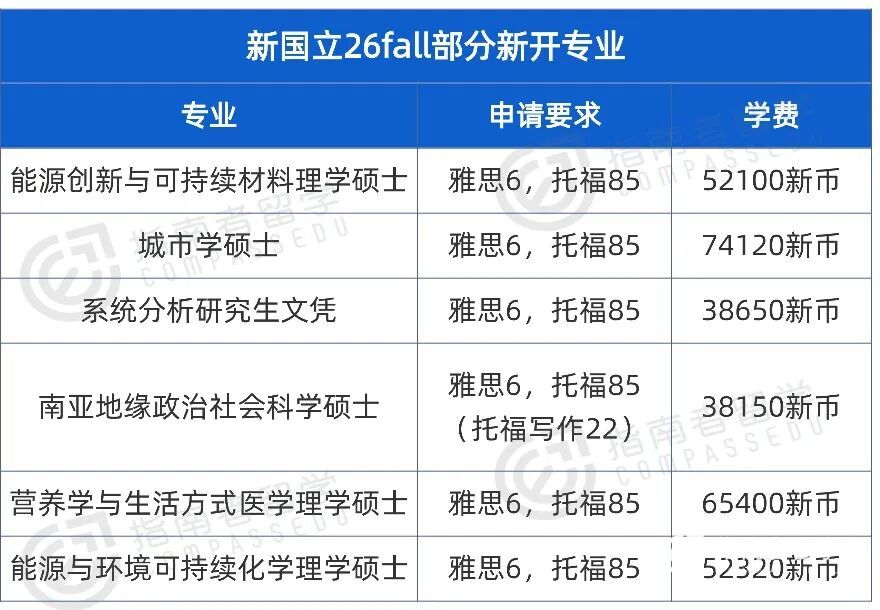 今年新国立新增录城市学硕士、健康经济学与结果研究理学硕士、能源创新与可持续材料理学硕士等多个跨学科专业,为跨申或背景稍弱的申请者提供了利好。