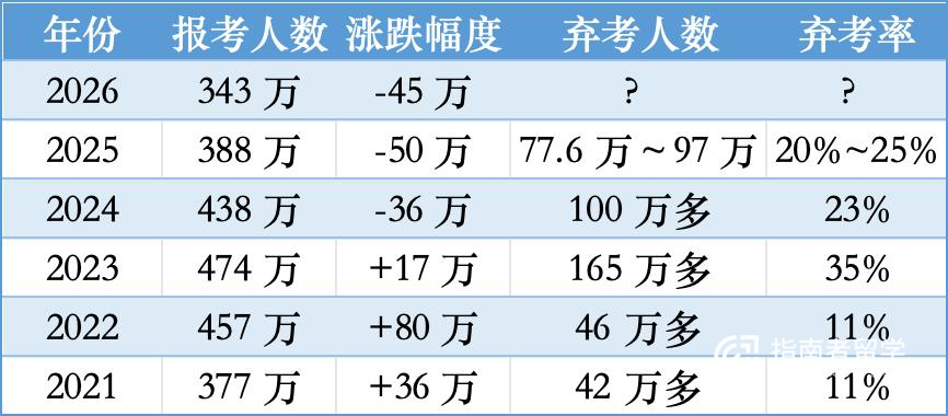 再配上那份近五年考研弃考率“稳中有升”的表格,突然觉得:每年冬天挤在考场里的人是英雄,没走进那扇门的,也未必是“失败者”。