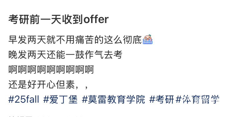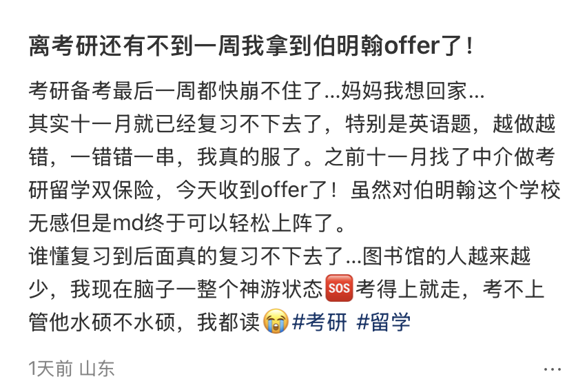 “离考研还有一周拿到伯明翰offer,终于能‘摆烂’上考场了”