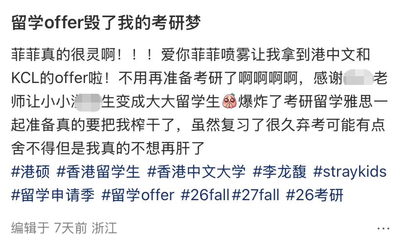 “港中文+KCL的offer砸来,直接放弃复习了半年的考研”