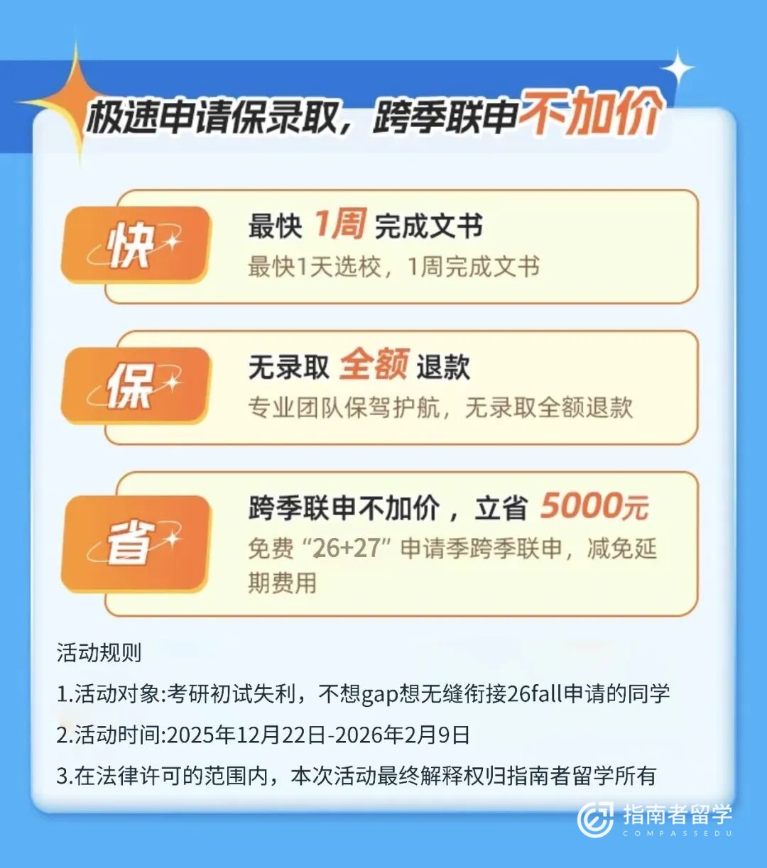 但指南者留学深耕硕士留学申请多年,熟稔各国院校的项目开放节奏,能够帮你精准把握最佳投递时机。