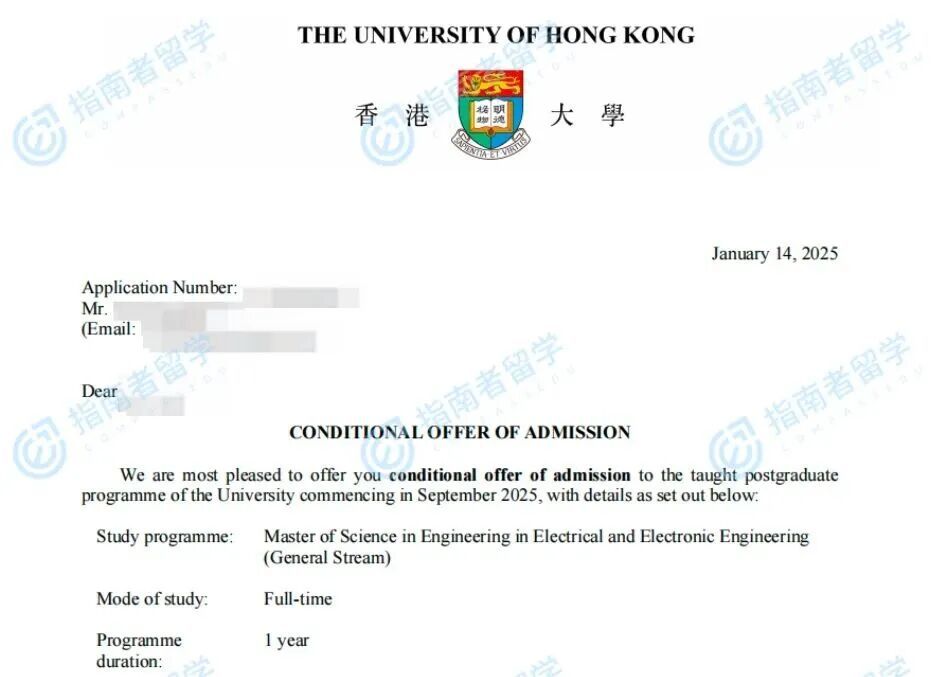 我大三便在指南者留学的帮助下早早开启了留学的准备,并2025年1月15日顺利拿到了港大EEE常规方向的offer。