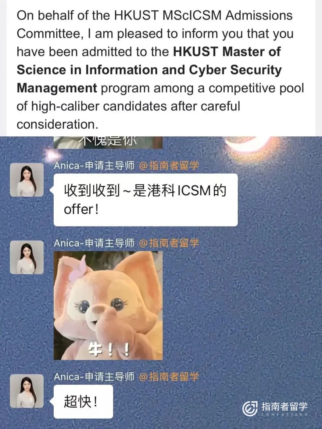 而指南者的牛老师却找到了港科商学院中的网络安全专业,这个专业因为是新开的,申请难度会相对较小,同时又和我本科学科有交叉,最终也正是这个专业让我成功上岸香港科技大学。
