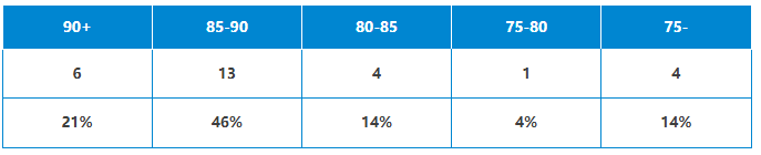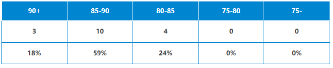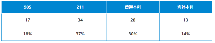 其中,本科院校背景来自985院校的同学共计17枚;211院校的同学共计34枚;普通本科共计28枚;海外本科13枚。