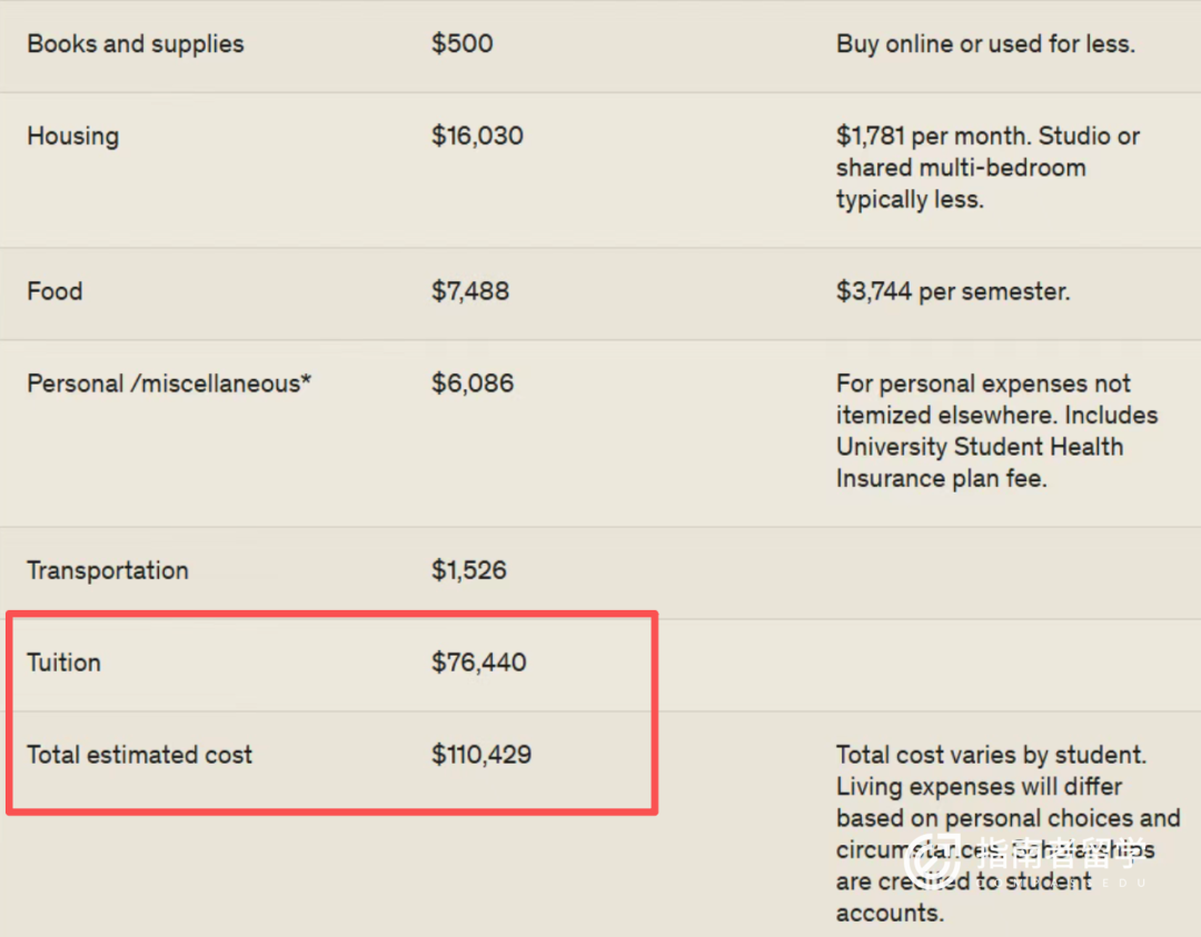 这里必须提醒一句:美国很多硕士是1.5-2年制的,别漏算了第二年的费用,总价会更高!