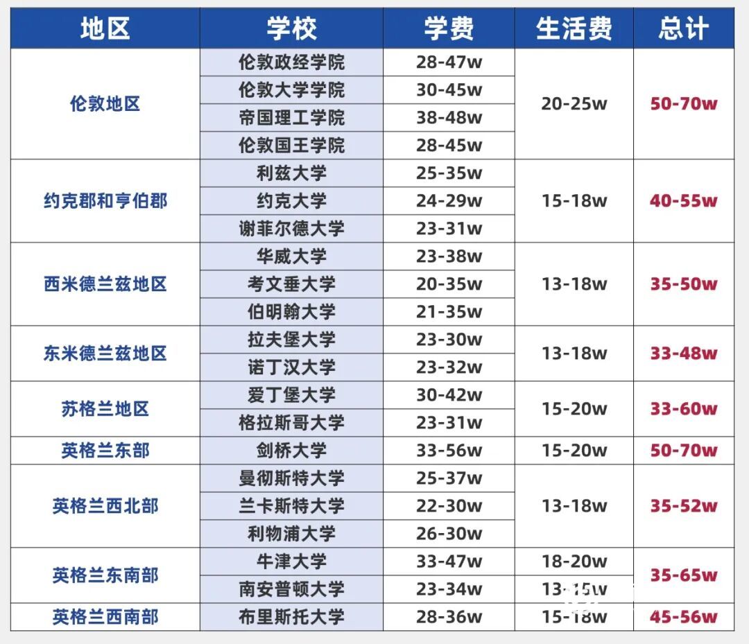 先看学费:如果你想冲G5名校(牛津、剑桥、帝国理工等),一年学费大概3.5-6万英镑(约合人民币32万-56万)。最贵的自然也是商科,比如牛津、剑桥的金融经济、管理类专业,学费能达到5万英镑以上;理工科像工程、计算机专业,学费大概在4万-4.5万英镑;人文社科类最便宜。