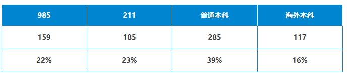 在目前收获的726枚offer中,来自985院校的共计159枚。