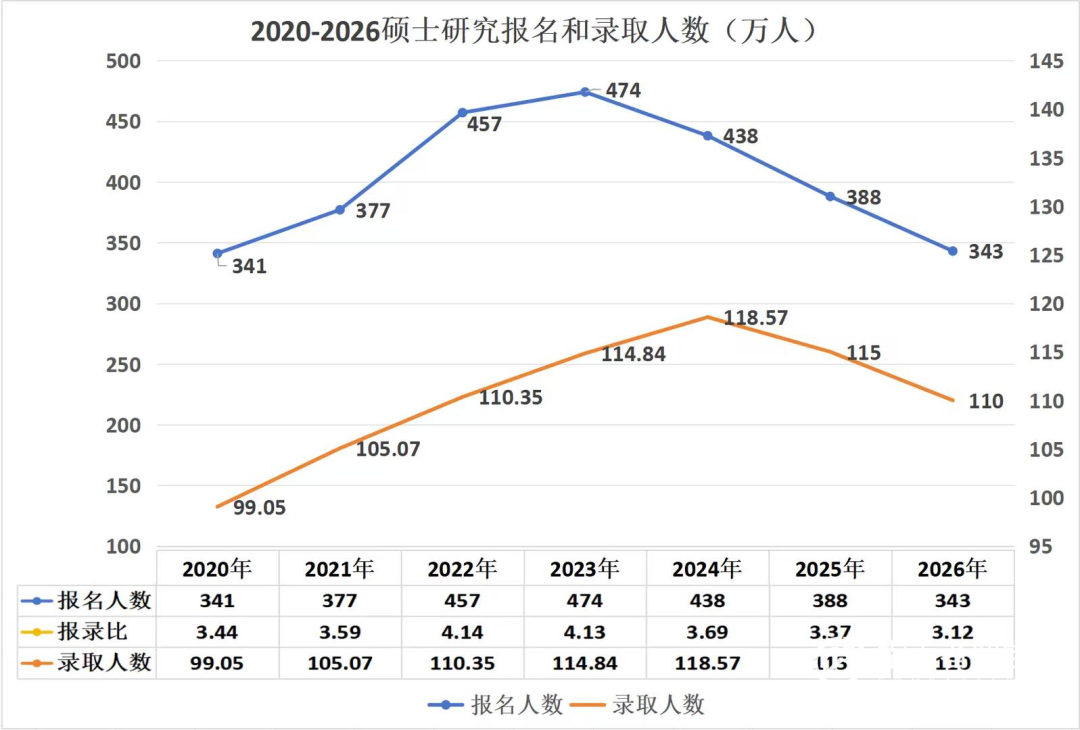从上岸难度来说,考研是“千军万马过窄桥”:三百多万考生抢不足110万的名额,热门专业报录比动辄40:1,360的高分落榜都是常事。