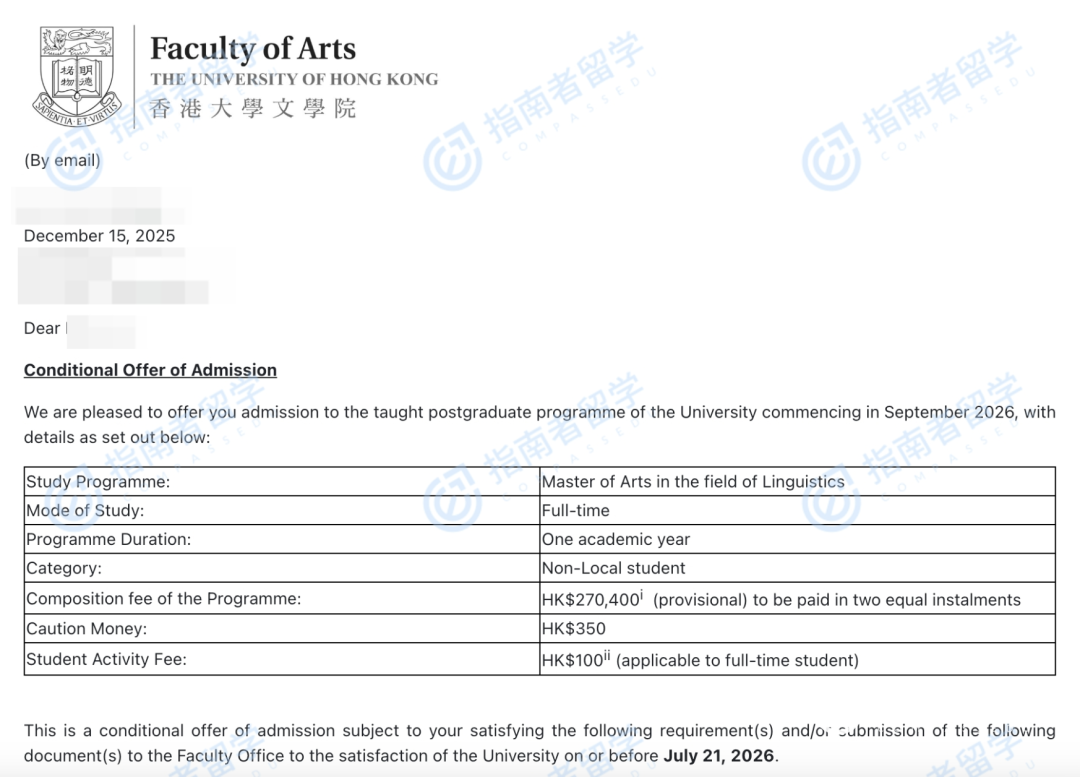 往年港大都是11月左右才开申请通道,25年居然提前了一个月,10月就开放了,发offer的速度更是快到离谱。我12月初刚面完试,还没一个星期,港大语言学的offer就砸过来了。