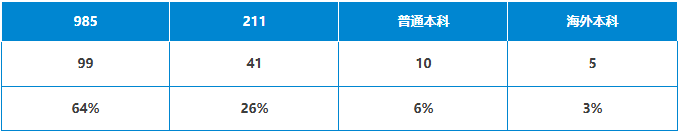 其中,来自985院校的99枚;211院校41枚;普通本科10枚;海外本科5枚。