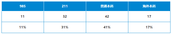 其中,来自985院校的11枚;211院校32枚;普通本科42枚;海外本科17枚。
