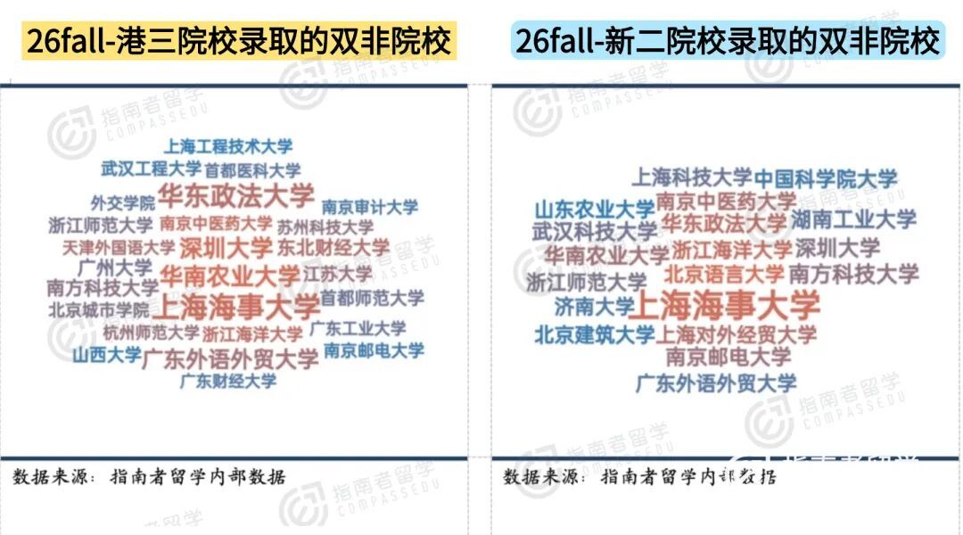 港三、新二对双非院校的偏爱略有差异: