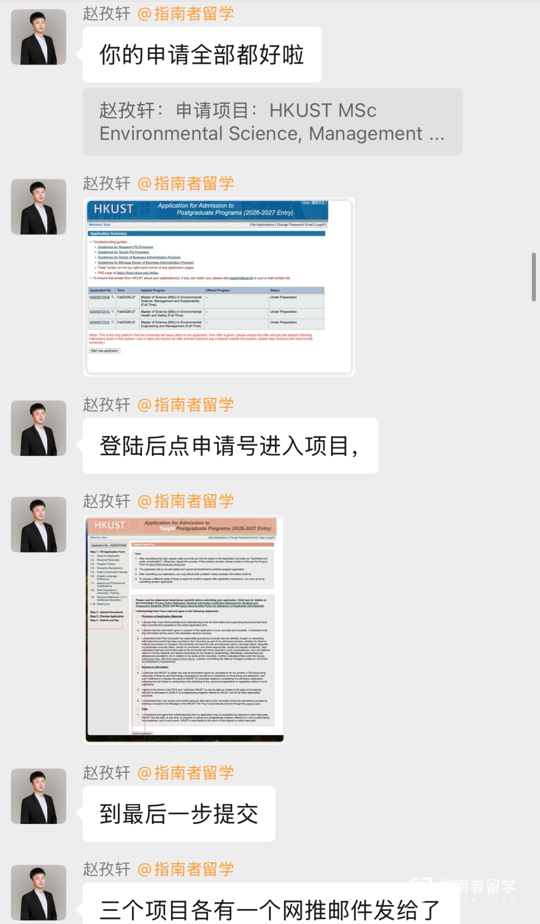 等到9月份港校申请系统开放后,老师第一时间就帮我提交了所有申请。要知道,港校的申请是“先到先得,招满即止”,尤其是热门专业,早提交能大大提高录取概率。