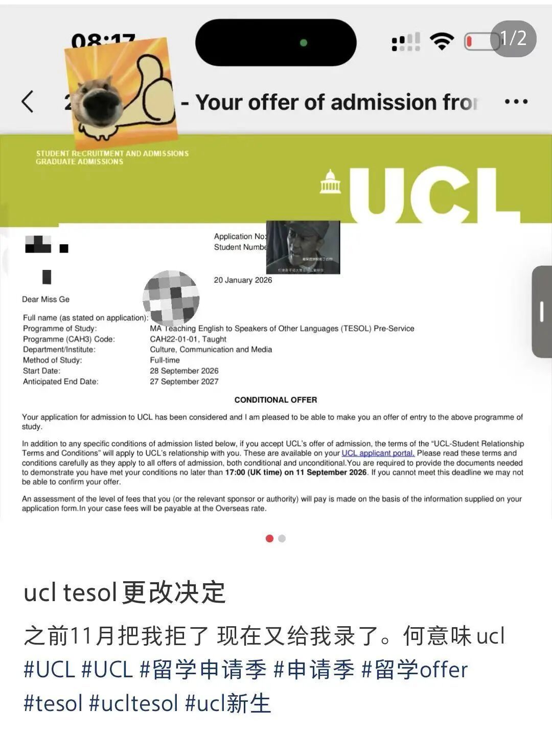 说一千道一万,UCL的“硬核”其实从未褪色。这波拒信变offer的补录操作,压根不是实力滑坡,纯属申请节奏上失了先机的被动之举,当然也不排除是个别专业的特殊补录手段。