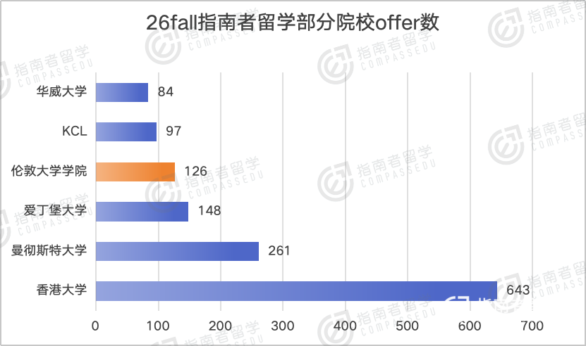 而和它排名相近、经常被拿来对标的港大,反差就很明显了:26fall指南者收到的港大offer足足有643枚,数量直接是UCL的5倍多。