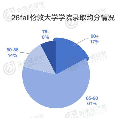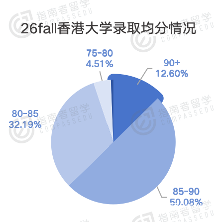 目前拿到UCL录取的同学,均分在85分以上的占到了78%。再看港大,均分85以上的只有62%左右。这么一看,UCL的均分门槛不仅不低,反而比港大还高出一小截。