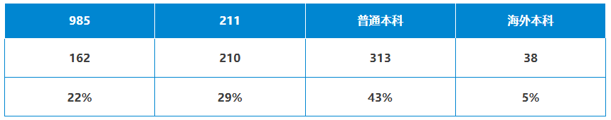 其中,来自985院校的162枚;211院校211枚;普通本科313枚;海外本科38枚。