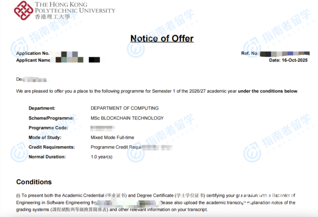 今年2月份港城的Offer也来了。目前,我还是选择接受港理工区块链专业的Offer。未来在香港,我想好好钻研一下区块链在金融领域的应用。