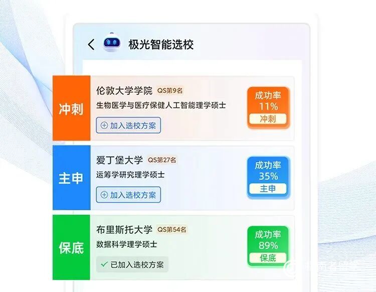 核心升级的拳头产品——极光智能选校,更是成为申请者的“规划神器”!