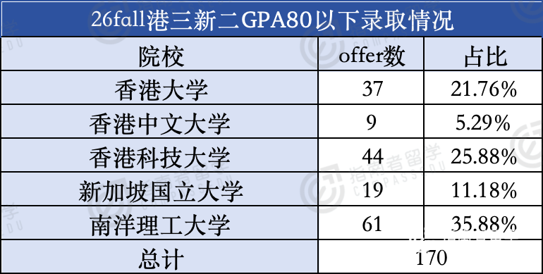 从录取数量来看,南洋理工大学堪称低均分申请者的“福音”——26fall发放了61枚offer,占总录取量的35.88%。