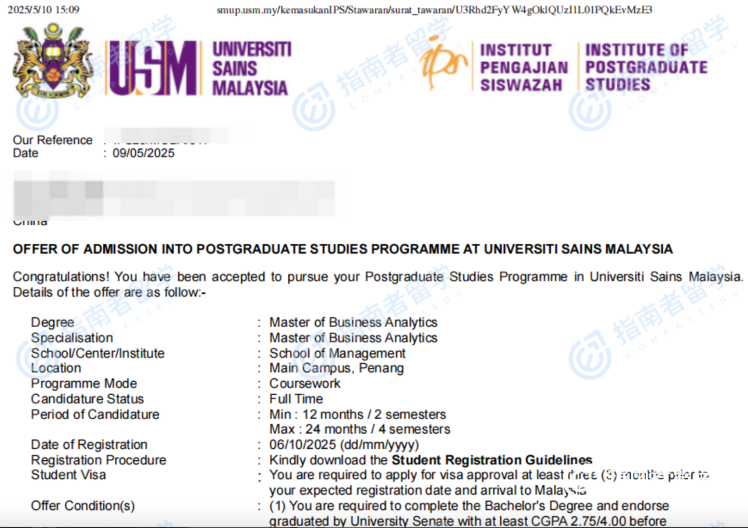 按照指南者老师制定的方案,我最终申请了两所院校:马来西亚国立大学(UKM)和马来西亚理科大学(USM)。