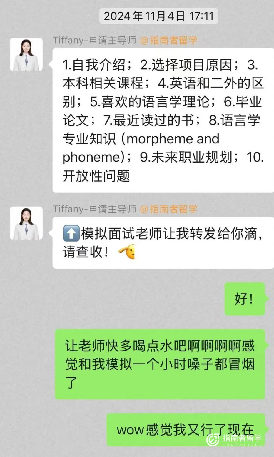 笔试顺利通过,面试却让我犯了怵。平日里自诩能说会道,可一想到要面对专业考官,就忍不住担心自己班门弄斧。关键时刻,指南者的模拟面试培训老师帮了我大忙。老师耐心地帮我梳理历年面试真题,教我面试的“套路”——回答问题时,不只是简单地一问一答,更要主动向考官展示自己的专业能力和对项目的渴望。