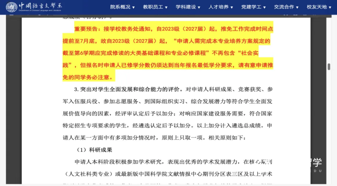 先是清华、人大等高校在2025年突然砍掉保研夏令营。复旦中文系随后又扔下重磅炸弹,官宣自2023级(2027届)起,推免工作提前至7月底完成。