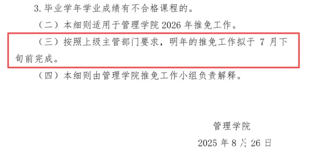 紧接着,华科、山理工等一众院校的内部通知接踵而至,2027届推免资格评定拟提前到7月下旬的消息,在保研圈疯传。