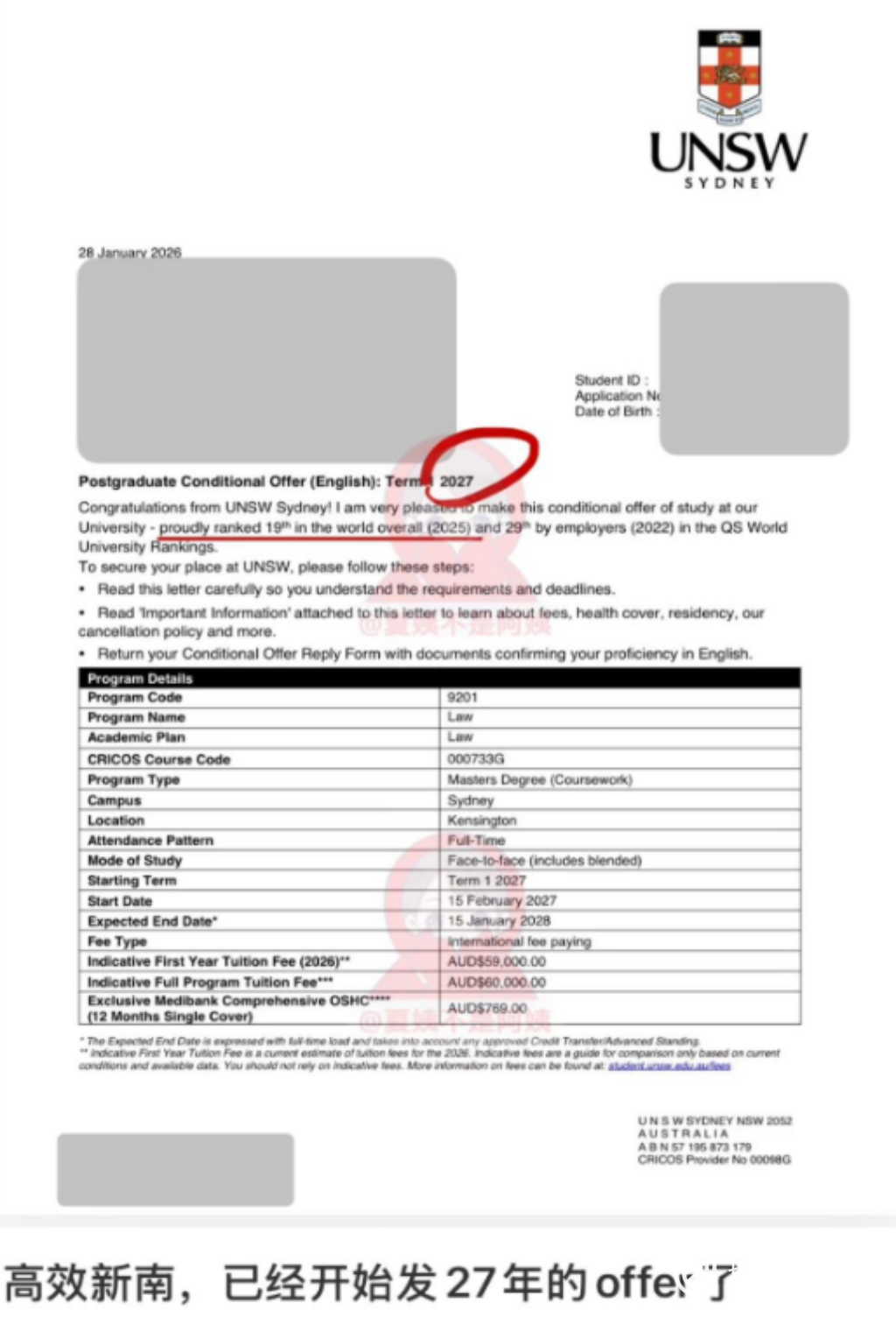 连以往高冷的南洋理工也在26fall首次正式开放硕士提前批。甚至澳洲新南威尔士大学也加入了提前批的行列,2026年1月就开始抢夺27fall的学生。