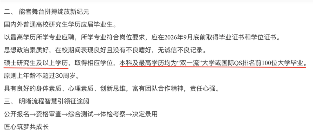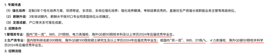 中国华电集团四川分公司招聘公告里,把“国内双一流/985/211”与“海外QS前50/前100”写在同一条标准里。