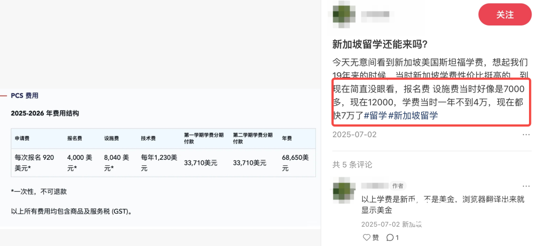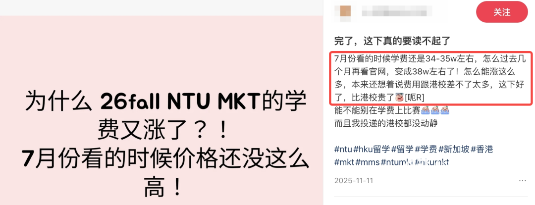 “7月看NTU学费还是34w,现在变38w,这学费是坐火箭长的吗?”